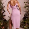 Cowl Neck Pleated Midaxi Dress in Dusty Pink