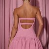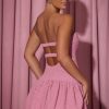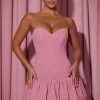Cut-Out Bubble Hem Corset Mini Dress in Dusty Pink
