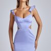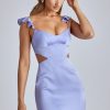 A romantic silhouette made for enchanting moments, the Rialta mini dress is designed in our premium figure-enhancing satin fabric. This stunning thigh-skimming style features a bust-flattering V neck, frilled shoulder straps, and sexy side cut-outs.