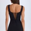 Sleek staples with a twist. Combining our signature corsetry with a premium fabrication, the Brittany mini dress is crafted from lightweight tech nylon taffeta with a touch of stretch to a figure-hugging silhouette, complete with a built-in boned structure to create a sculpted hourglass shape. It’s framed with a square neckline, elevated with intricate draping and features an adjustable lace-up back for your perfect fit.