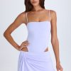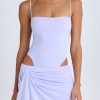 Make a statement with the Shiloh mini dress. Inspired by noughties styles and designed to evoke the look of sleek separates, it’s crafted from lightweight stretch jersey with a fitted bodysuit and floaty faux-wrap mini skirt. It’s punctuated with cut-outs at each side to create a low-rise effect and elevated with waterfall draping at the hem. The slender camisole shoulder straps can be adjusted for a custom fit and enhanced support.
