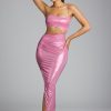 Draped Metallic Jersey Maxi Dress in Rose Pink