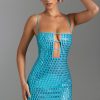 Exclusive eveningwear. Designed for memorable evenings, the Alanni mini dress is crafted from premium 20D mesh with a touch of stretch and embellished with scores of rectangular HOTFIX crystals that catch the light from every angle. It’s cut to a classic bodycon silhouette that hugs your curves and features a structured boned bodice punctuated with precise cut-outs at the front. The camisole shoulder straps can be adjusted for enhanced support.