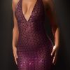 Embellished Halterneck Gown in Deep Purple