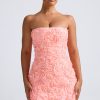 Inspired by the beauty of nature, the Azaelea dress is imagined in our London atelier and designed to turn heads. It’s crafted from premium satin with a delicate hand-applied tulle overlay comprising three-dimensional floral appliqués and cut to an A-line silhouette with a bandeau neckline. It’s fitted with an internal corset for enhanced shaping and silicone taping for a comfortable fit.