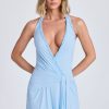 Halterneck Draped A-Line Mini Dress in Powder Blue