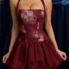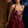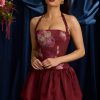 Romantic silhouettes elevated with florals. A style you’ll reach for time and time again, the Nanala mini dress is crafted from lustrous stretch georgette and satin to a structured bubble silhouette, complete with matching jersey shorts for a little extra coverage. It’s framed with adjustable halterneck straps for a customisable support and is complete with corset-inspired lace-up detailing at the back.