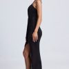 Perfect for sunset drinks and endless dinner dates, the Margot dress is rendered in two enduring hues. It’s crafted from lightweight textured jersey to a column silhouette with a halter neckline adorned with custom-developed hardware and falls to a maxi-length skirt punctuated with a thigh-high split. It’s complete with a statement cut-out at the front, figure-flattering ruching and a cascading waterfall trim.