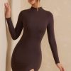Designed in our premium modal fabric with body sculpting technology, the Bindi mini dress is a staple design for showcasing your silhouette. Cut to a mini length with a bodycon fit, Bindi features a high neck and long sleeves for an elegant finish. The bodycon skirt is accentuated with a narrow split that adds allure to this seductive minimalist design.