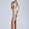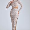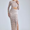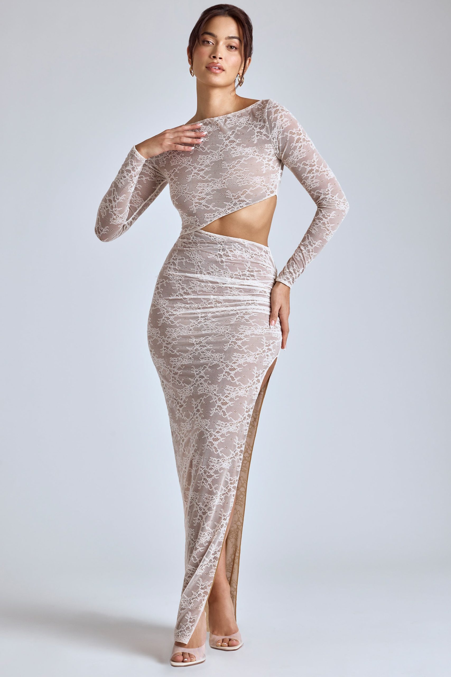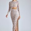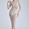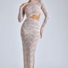 Effortlessly romantic. Perfect for date nights and memorable events, the Ingrid dress is cut from premium lace with a power mesh lining that accentuates your curves. It’s cut to a maxi length with fitted sleeves and is complete with a figure-enhancing asymmetric cut-out at the waist.