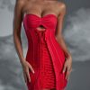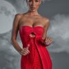 Bewitch them all in our all new Salem bandeau mini dress. Cut from our body contouring stretch mesh fabric, Salem is an all new silhouette featuring a flattering bandeau sweetheart neckline with daring under bust cut out. An open corset at the front of the design ensures glamor isn’t compromised whilst satin lined detailing adds a seductive allure. Fun and flirty, creating a seductive look for your next Halloween party won’t be a problem with the Salem mini dress.