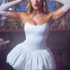 High-impact silhouettes. Designed for spooky season and beyond, the Minerva mini dress is crafted from premium stretch satin with an organza lining that accentuates the voluminous bubble-hem silhouette. It features a built-in corset that creates a structured fit at the bodice and is framed with a pointed bandeau neckline. It’s complete with a signature adjustable lace-up back and matching jersey shorts for enhanced coverage.
