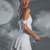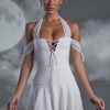 Exude vintage vamp allure in the Elvyra mini dress. This premium dual layered mini dress is designed in our dual layered jersey fabric that sits comfortably against the skin with a single layered mesh overlay that adds a ghostly aspect to this statement Halloween look. Ensuring the style is spooky and seductive, Elvyra features a bust flattering lace up front and halter neckline with delicate bardot straps that fall off the shoulders. Complete with a loose fit, hanky hem skirt, Elvyra is the perfect piece to create a Halloween costume look that’s fun and flattering.