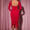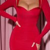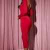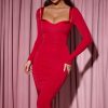 Layered Bra-Detail Ruched Midaxi Dress in Red