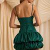 Elevated glamour with a festive twist. Crafted from lustrous non-stretch taffeta, the Clarice mini dress features a drop-waist bodice with a built-in corset for enhanced shaping and a stunning double-layered bubble skirt. In keeping with our love for elevated details, it’s complete with ruched gathering for a bust-flattering fit, a functional lace-up back, adjustable straps and coordinating jersey shorts for the perfect amount of coverage.