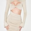Our most ‘grammable style, Alter Ego is super sleek, with long sleeves and a twisted neckline. The look is complemented with cut out details and ruching to the body and sleeves. Style it up with knee high boots, slick hair and cool girl gold hoops.
