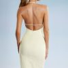 Meet Hani, an elegant midi dress designed with a low neckline and playful thigh-split that brings sophistication and seduction to your high-Spring wardrobe. The halter neck and low, scoop back design is complete with a beautiful crystal strap.
