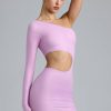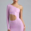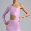 Doll-inspired looks with a signature twist. Delve into a world of fantasy festival styling with the Zanab mini dress, designed in our 20D stretch-mesh fabric with a gleaming metallic coating for a comfortable, sculpted look. Imagined in two nostalgic hues, it’s cut to a one-shoulder silhouette and spliced with a bold cut-out at the waist.