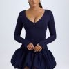 A masterclass in effortless glamour, the Tallou mini dress features an exaggerated voile bubble-hem skirt and figure-hugging bodice crafted from buttery soft and stretchy jersey made with TENCEL™ Modal fibres derived from controlled or certified wood sources. The chic silhouette is framed with a plunging V-neckline and fitted sleeves with lightly flared cuffs.