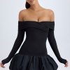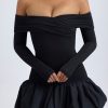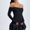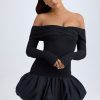 Dressing up for dinner plans or date night? You’ll need the Serra mini dress. Designed with a drop-waist stretch jersey bodice made with TENCEL™ Modal fibres, derived from controlled or certified wood sources, and falls to a voluminous voile bubble-hem skirt. It’s framed with a ruched sweetheart neckline and off-shoulder long sleeves for a chic look.