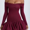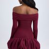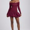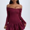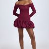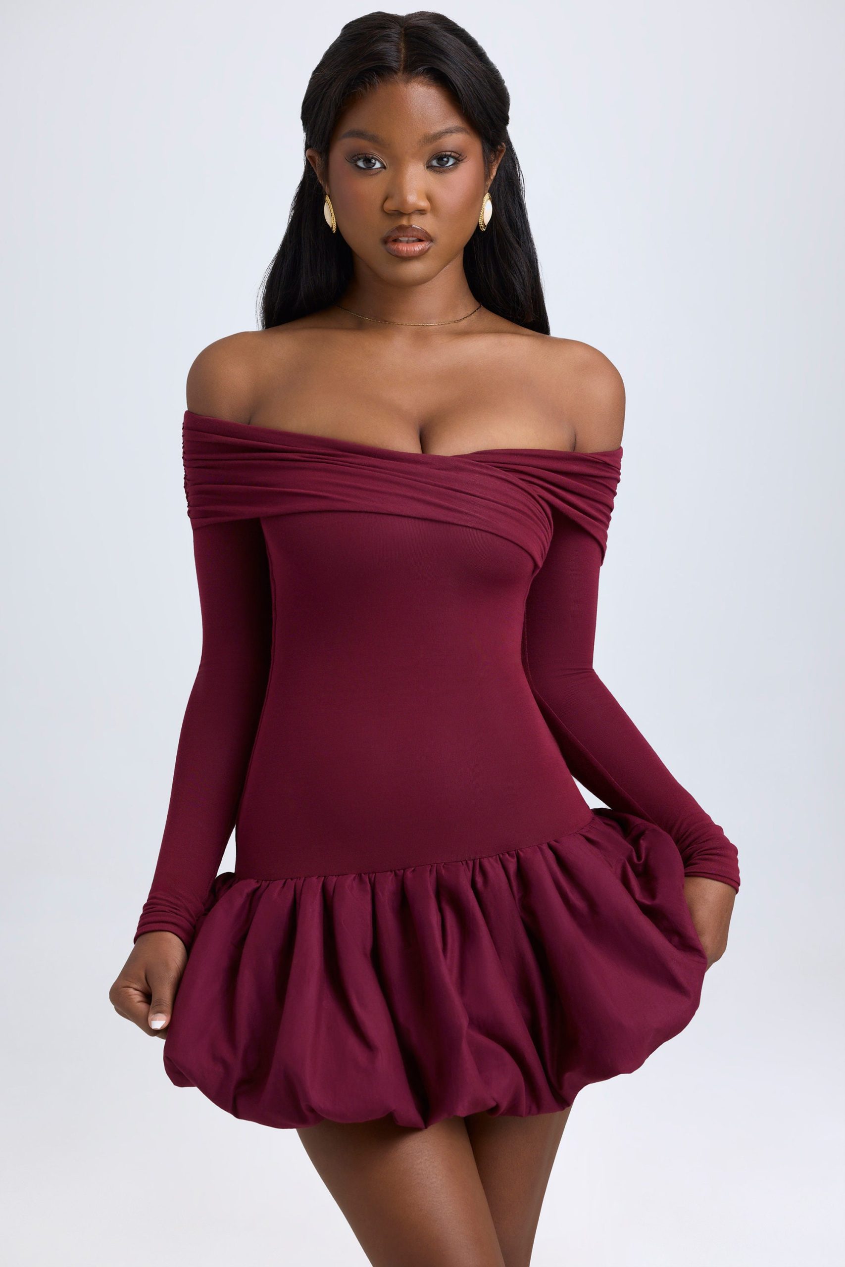 Dressing up for dinner plans or date night? You’ll need the Serra mini dress. Designed with a drop-waist stretch jersey bodice made with TENCEL™ Modal fibres, derived from controlled or certified wood sources, and falls to a voluminous voile bubble-hem skirt. It’s framed with a ruched sweetheart neckline and off-shoulder long sleeves for a chic look.