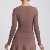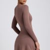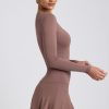 Modal Ruched Crew-Neck Mini Dress in Taupe