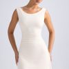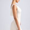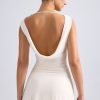 Capturing the essence of endless nights, the Tigen mini dress is rendered in two summery hues. Its cut from our premium sheer jersey fabric to a subtle A-line silhouette with off-shoulder cap sleeves and enhanced with precisely placed ruching at the waist. It turns to reveal a low cut-out back with draped cowl detailing.