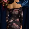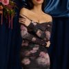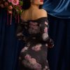 Off-Shoulder Ruched Mini Dress in Black Floral Print