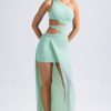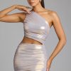 One Shoulder Metallic Jersey Mini Dress in Light Gold