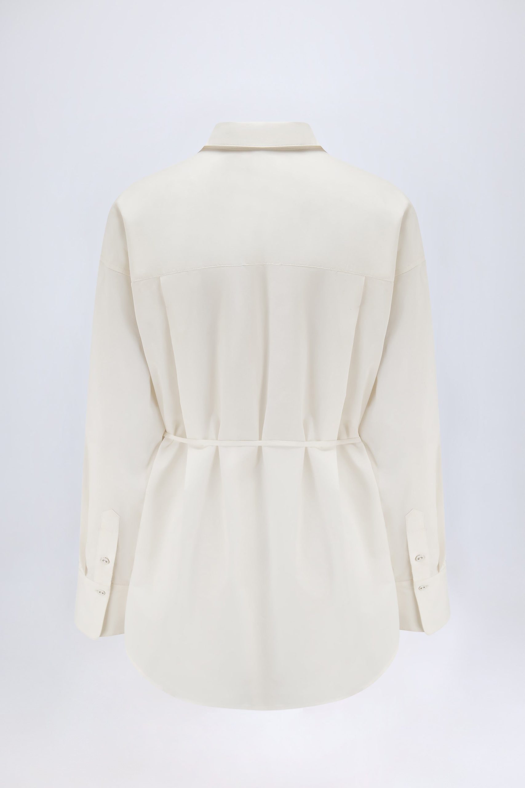 Capturing the charm of coastal getaways with a chic twist, the Lerici oversized shirt is crafted from premium stretch-cotton poplin for a lightweight, breezy feel. Designed with a curved hem and collared neckline, it’s traced with button fastenings at the front and features a functional back tie that can be adjusted to cinch the silhouette.