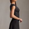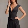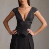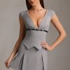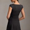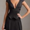 Tailoring with an edge. A fresh take on classic silhouettes, the Maelis mini dress is designed to give the illusion of separates. Crafted from our premium pinstriped twill with a stretch-satin lining for enhanced comfort, it features a waistcoat-inspired bodice with a plunge neck, belt detailing and a shaped hem that sits perfectly over the box-pleat mini skirt.