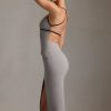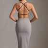 Structured tailoring with the perfect edge. Crafted from crisp suiting fabric that hugs every curve and lined in stretch satin for enhanced comfort, the Veronique midaxi dress is cut to a classic pencil silhouette, elevated with a plunge V-neckline, princess seams at the bodice for precise shaping and a statement open back with buckle-detailed twist straps. It’s complete with flap pockets at the front and a thigh-high front split.