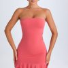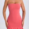 Ruffle-Trim Cut-Out Bandeau Mini Dress in Coral