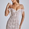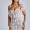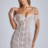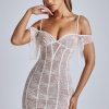 Sweet and sexy, our Eleonora mini dress is everything you need for the season of love. Fitted to the body with a thigh-skimming a-line skirt, Eleonora is cut from premium stretch lace and features a mesh underlay for elevated coverage. The feminine silhouette also showcases a sultry low back and delicate draping at the shoulders.