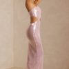 Glittering evenings with Isabel. Designed in our sequin embellished, dual lined power mesh fabric and ready to elevate your summer evening plans. The Isabel maxi dress features a sleek asymmetric neckline, statement cut-out detailing at the waist and a raw edge hem.