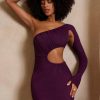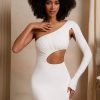 Fun and flattering, Anoushka is the perfect bodycon mini dress for party season. Designed in our premium stretch jersey fabric with ruched mesh overlay, Anoushka works to contour your silhouette for a figure flattering fit. With a statement asymmetric neckline and waist narrowing cut outs at the side and underarm, Anoushka can be relied upon to draw attention. Complete with a single sleeve that flares at the wrist, your hardest decision will be choosing between plum or ivory for your next event.
