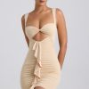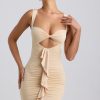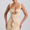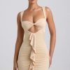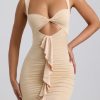 Slinky Jersey Cut-Out Ruffle-Trim Mini Dress in Buttercream