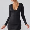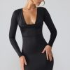 Memorable moments. Designed in our premium slinky jersey fabric that hugs your figure for a second skin fit, Oakley is a long sleeve mini dress designed to enhance your silhouette. Complete with a low plunge neckline and tight cut long sleeves, the Oakley mini dress is a flattering and seductive style perfect for late night parties.