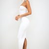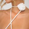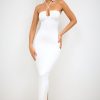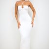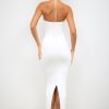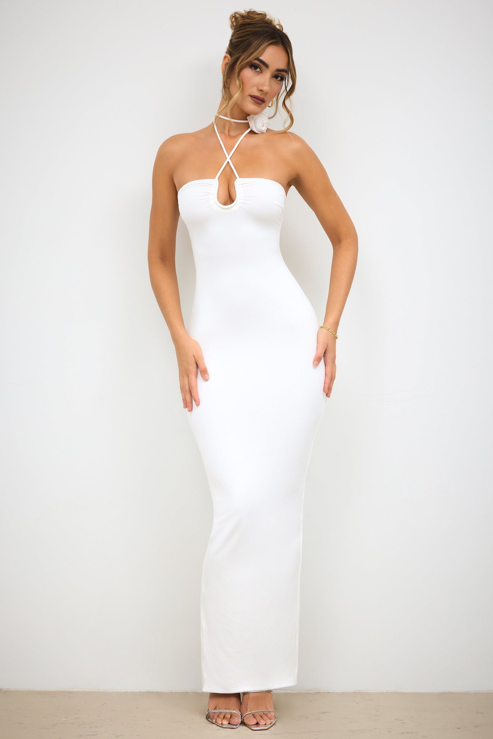 Slinky Jersey Rose Detail Halter Neck Maxi Dress in White