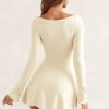 Sculpting and seductive, the Baize mini dress is perfect for creating an enviable silhouette. Cut from our premium modal fabric in two new season shades, the Baize mini features a bust flattering straight neckline with angled shoulders to further enhance your assets. Long flare sleeves are accentuated with self tie fastenings whilst the mini skirt features a seductive split on the left side. Understated and ultra flattering, Baize is a must have to bring the heat to cooler evenings.