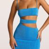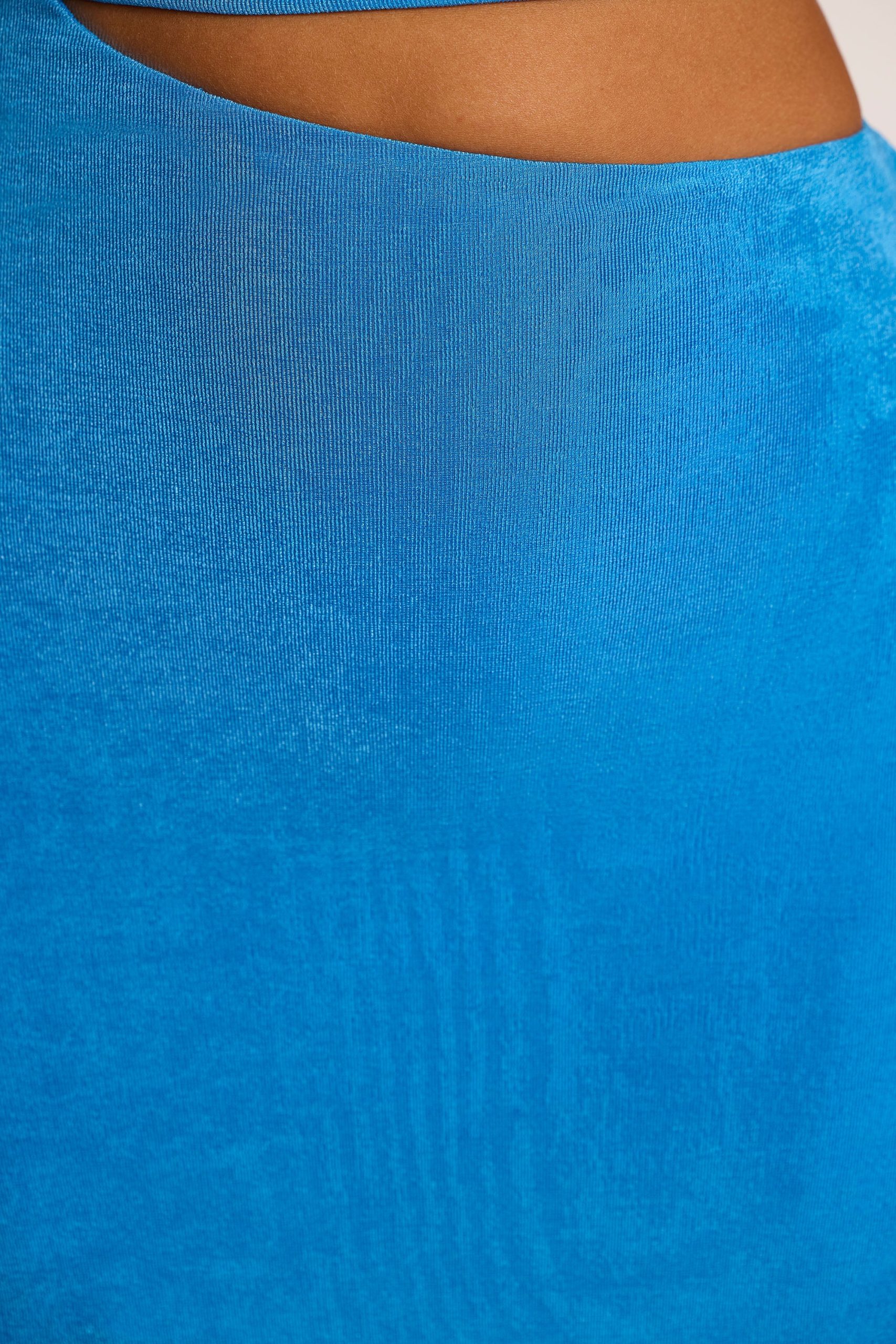 Skin-baring silhouettes. Created from a lightweight textured jersey fabric that’s form-accentuating and stretchy, the Azzurra mini dress is a statement evening design with distinctive cut-outs at the waist. Complete with a floaty thigh-skimming mini skirt and delicate adjustable shoulder straps.