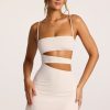 Skin-baring silhouettes. Created from a lightweight textured jersey fabric that’s form-accentuating and stretchy, the Azzurra mini dress is a statement evening design with distinctive cut-outs at the waist. Complete with a floaty thigh-skimming mini skirt and delicate adjustable shoulder straps.