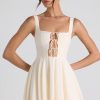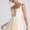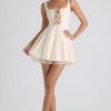 Designed with spontaneous daytime plans in mind: think al fresco lunch dates or brunch with the girls. Crafted from lightweight georgette that perfectly enhances your curves, the Nanisca micro mini dress is cut to a sweet A-line silhouette with cut-out detailing and adjustable ties at the bodice. It’s completed with a gathered tulle underlay at the hem.
