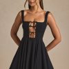 Designed with spontaneous daytime plans in mind: think al fresco lunch dates or brunch with the girls. Crafted from lightweight georgette that perfectly enhances your curves, the Nanisca micro mini dress is cut to a sweet A-line silhouette with cut-out detailing and adjustable ties at the bodice. It’s completed with a gathered tulle underlay at the hem.