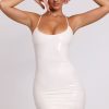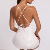 Fulfil your midnight fantasies. Designed in our high shine vinyl fabric, Kendall is cut to a mini length and features a bust-flattering scoop neckline. Delicate shoulder straps criss-cross at the back to complete this statement bodycon design.