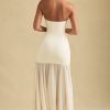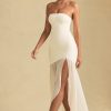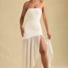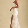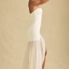 Glamour in every step. Guaranteed to turn heads, the Melina maxi dress is crafted from premium chiffon with a figure-hugging strapless bodice and sheer asymmetric skirt. It’s elevated with contouring seams at the front and back, cut to a universally flattering fishtail silhouette, and complete with a thigh-high front split.