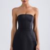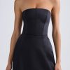 Classic minimalism with a structured twist. Modelled on classic styles, the Haisley mini dress is cut from recycled heavyweight satin to a shapely A-line silhouette that sculpts the waist and flares out at the hips. It features a built-in corset for enhanced shaping and support, as well as contouring seams that create an hourglass look.
