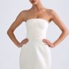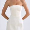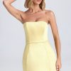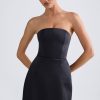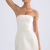 Classic minimalism with a structured twist. Modelled on classic styles, the Haisley mini dress is cut from recycled heavyweight satin to a shapely A-line silhouette that sculpts the waist and flares out at the hips. It features a built-in corset for enhanced shaping and support, as well as contouring seams that create an hourglass look.