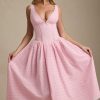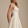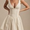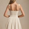 Feminine shape and romantic details, ready for spring days. Crafted from lightweight cotton broderie anglaise, the Sabina mini dress is cut to a universally flattering A-line silhouette with a fitted bodice and voluminous skirt. It’s framed with a V-shaped waist, scalloped plunge neckline and bow detailing at the front. It’s complete with adjustable straps and a shirred elasticated panel at the back for a comfortable fit.