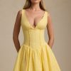 Feminine shape and romantic details, ready for spring days. Crafted from lightweight cotton broderie anglaise, the Sabina mini dress is cut to a universally flattering A-line silhouette with a fitted bodice and voluminous skirt. It’s framed with a V-shaped waist, scalloped plunge neckline and bow detailing at the front. It’s complete with adjustable straps and a shirred elasticated panel at the back for a comfortable fit.